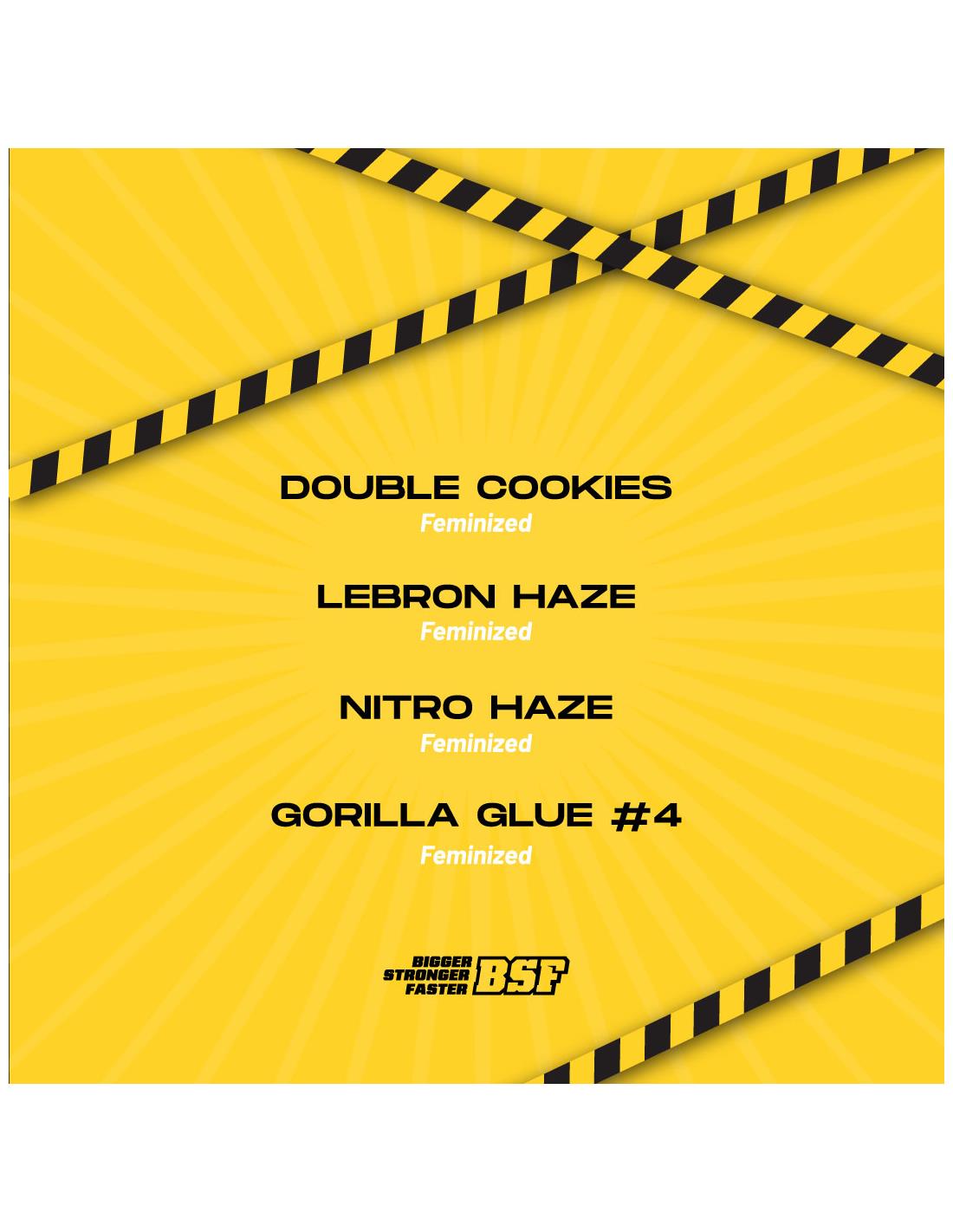 High Voltage Feminized Mix. BSF Seeds, presenta un nuevo mix de semillas feminizadas que hará explotar tu cabeza. High Voltage Feminized Mix es una selección de 4 de las variedades con más alto THC de BSF Seeds: Double Cookies, Nitro Haze, Lebron Haze y Gorilla Glue #4. Todas variedades fotoperiódicas separadas en burbujas independientes para que sepas lo que cultivas en todo momento.