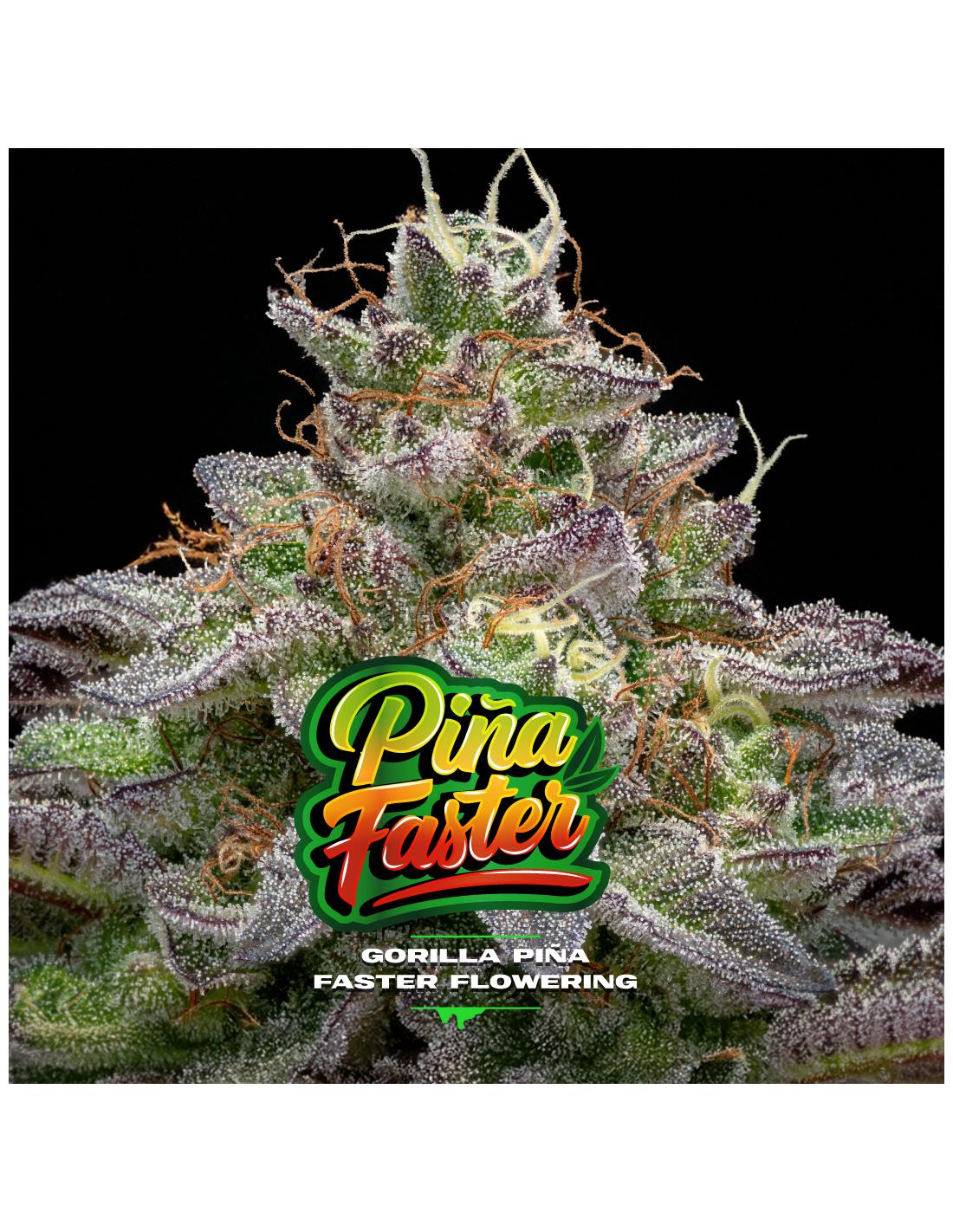 Gorilla Piña Faster es una versión optimizada para acelerar la cosecha, completando su ciclo en solo 7 - 8 semanas sin perder calidad ni potencia.