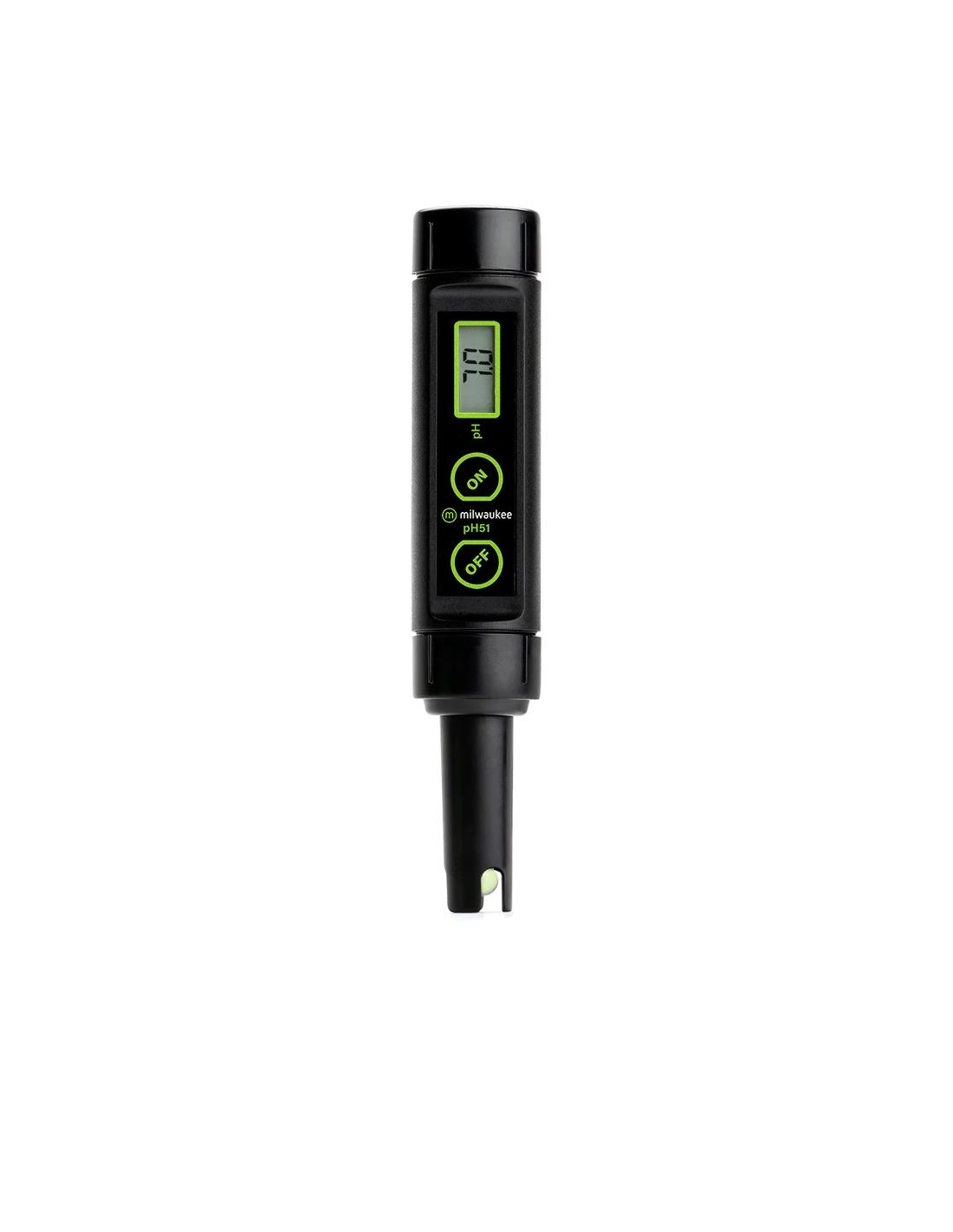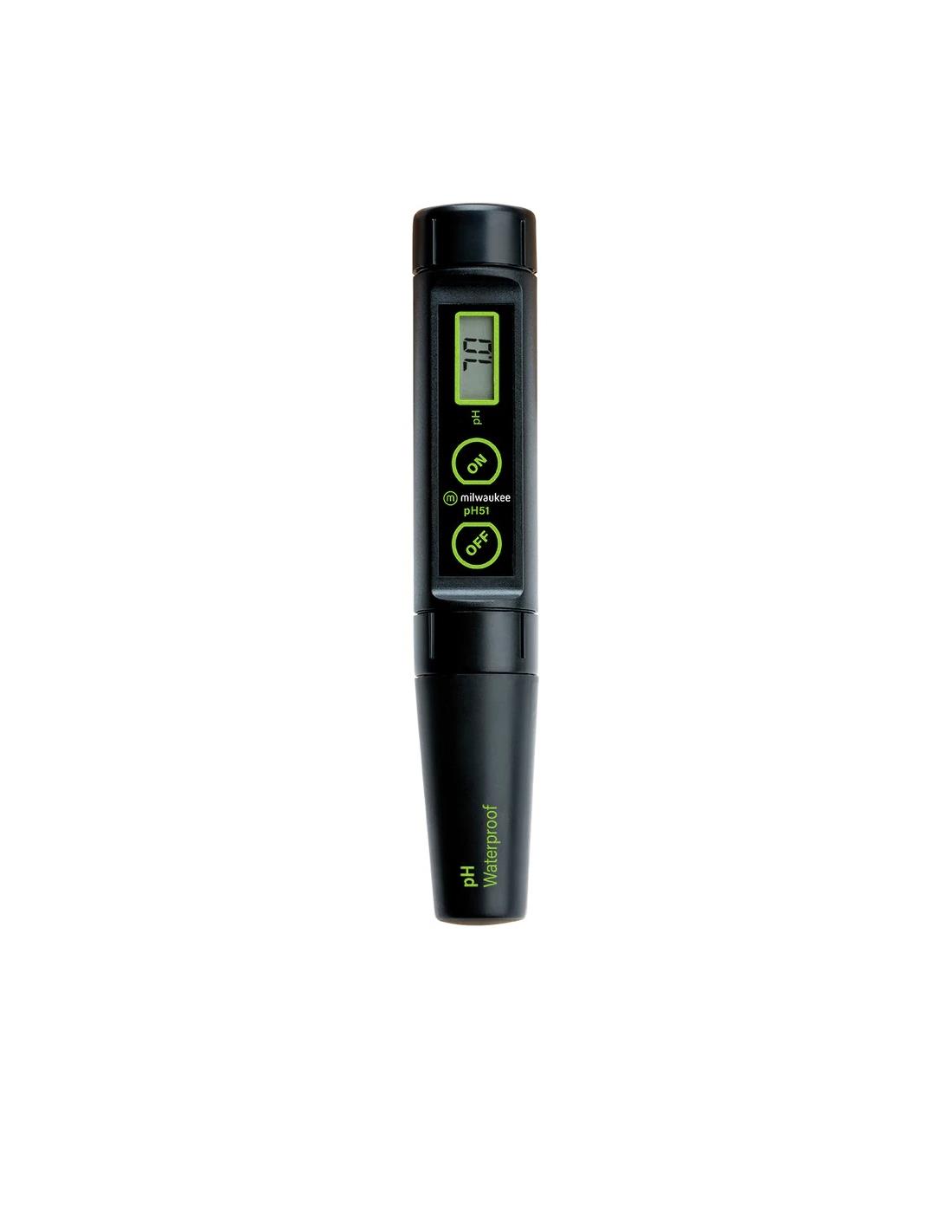 El pH51 es un comprobador de pH a prueba de agua con calibración manual de 2 puntos, precisión de pH de 0.1 y un rango de pH de 0.0 a 14.0.
