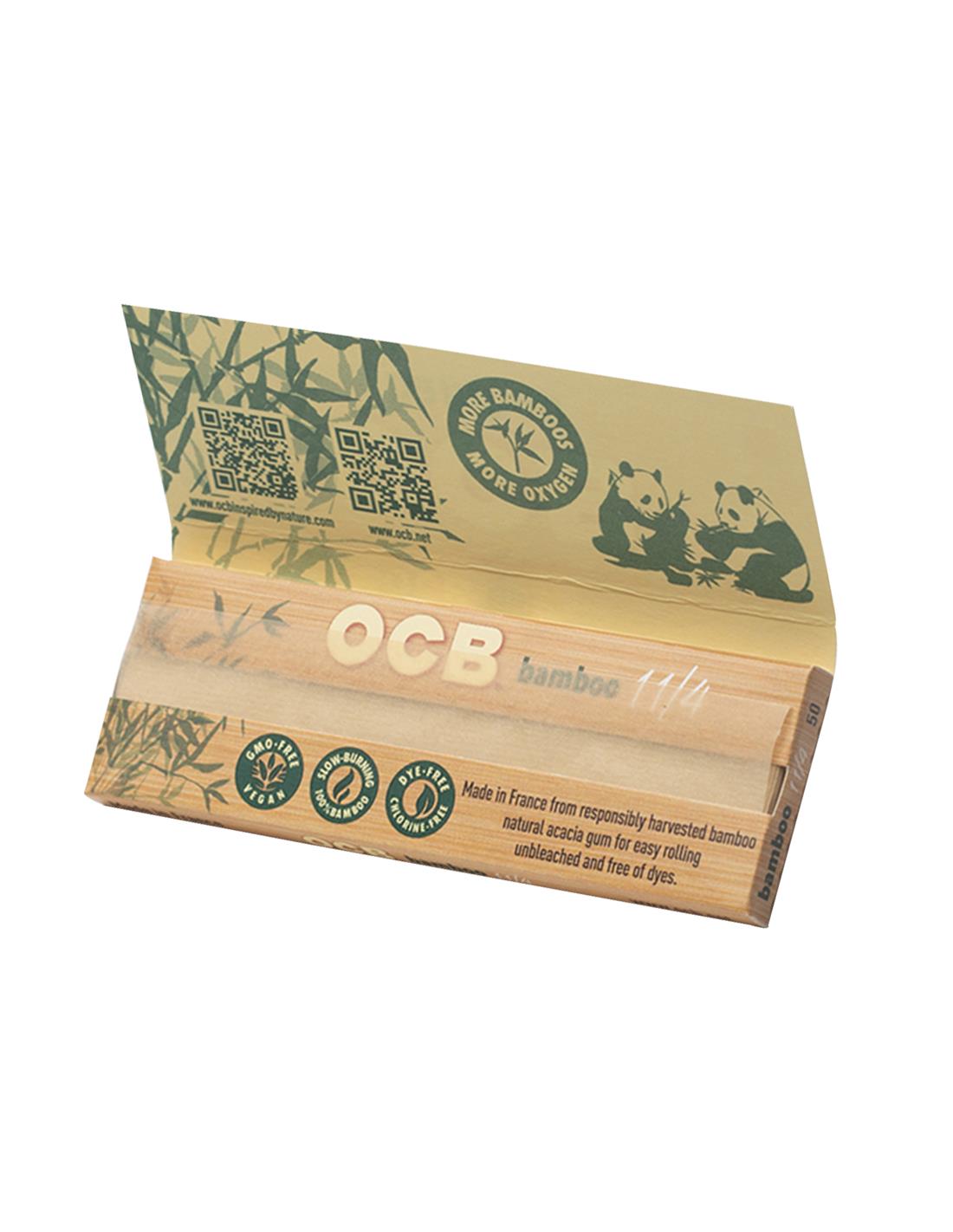 Papel de fumar OCB Bamboo tamaño 1 ¼ de combustión lenta, ultra fino, con goma arabiga, sin blanquear.
