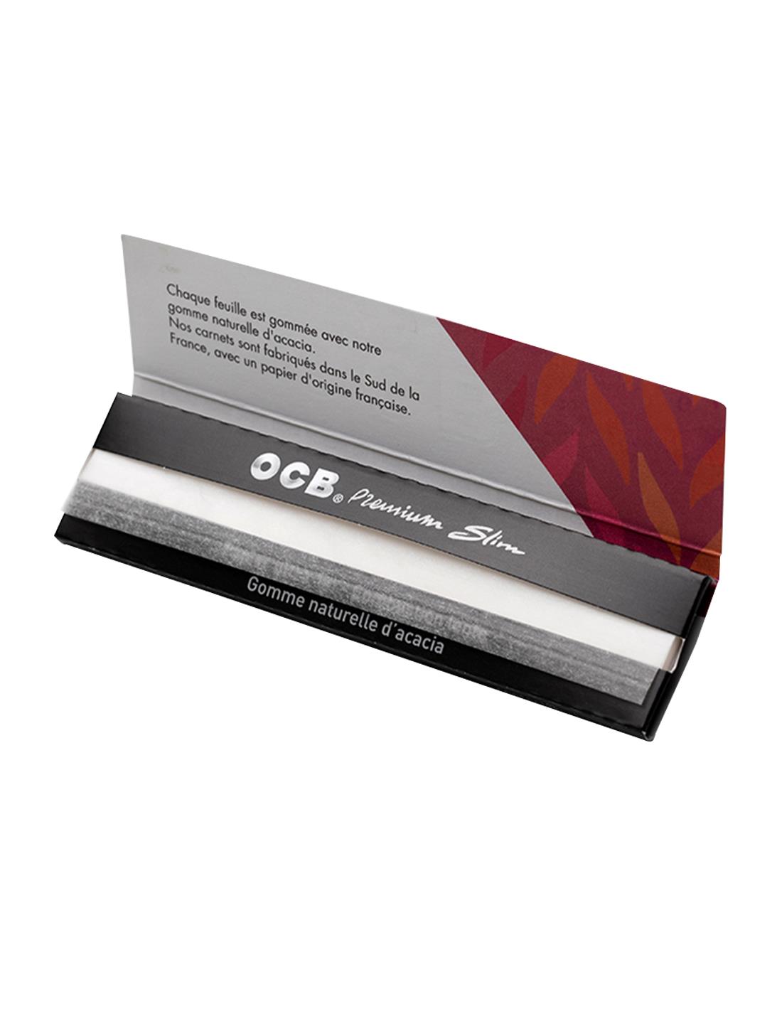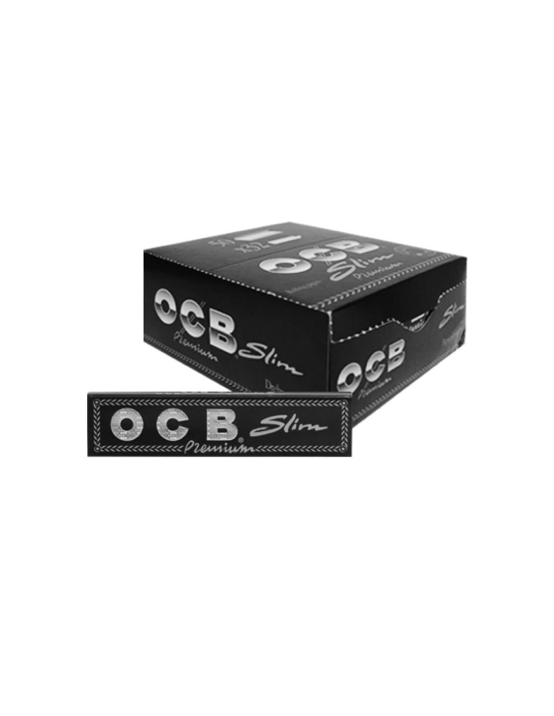 Display OCB Premium slim. Medida (109 x 44 mm). Combustión lenta. Sello de agua. 32 hojas por librito.