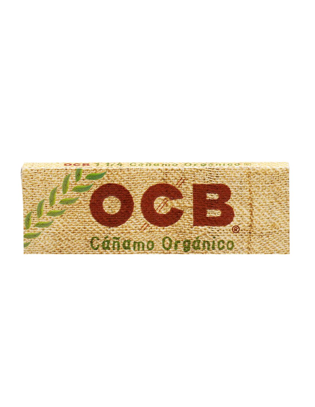Papel de fumar OCB Cáñamo orgánico tamaño 1 ¼ de combustión lenta, ultra fino, con goma arabiga, sin blanqueado, libre de GMO, producción vegana y de fibras sostenibles.