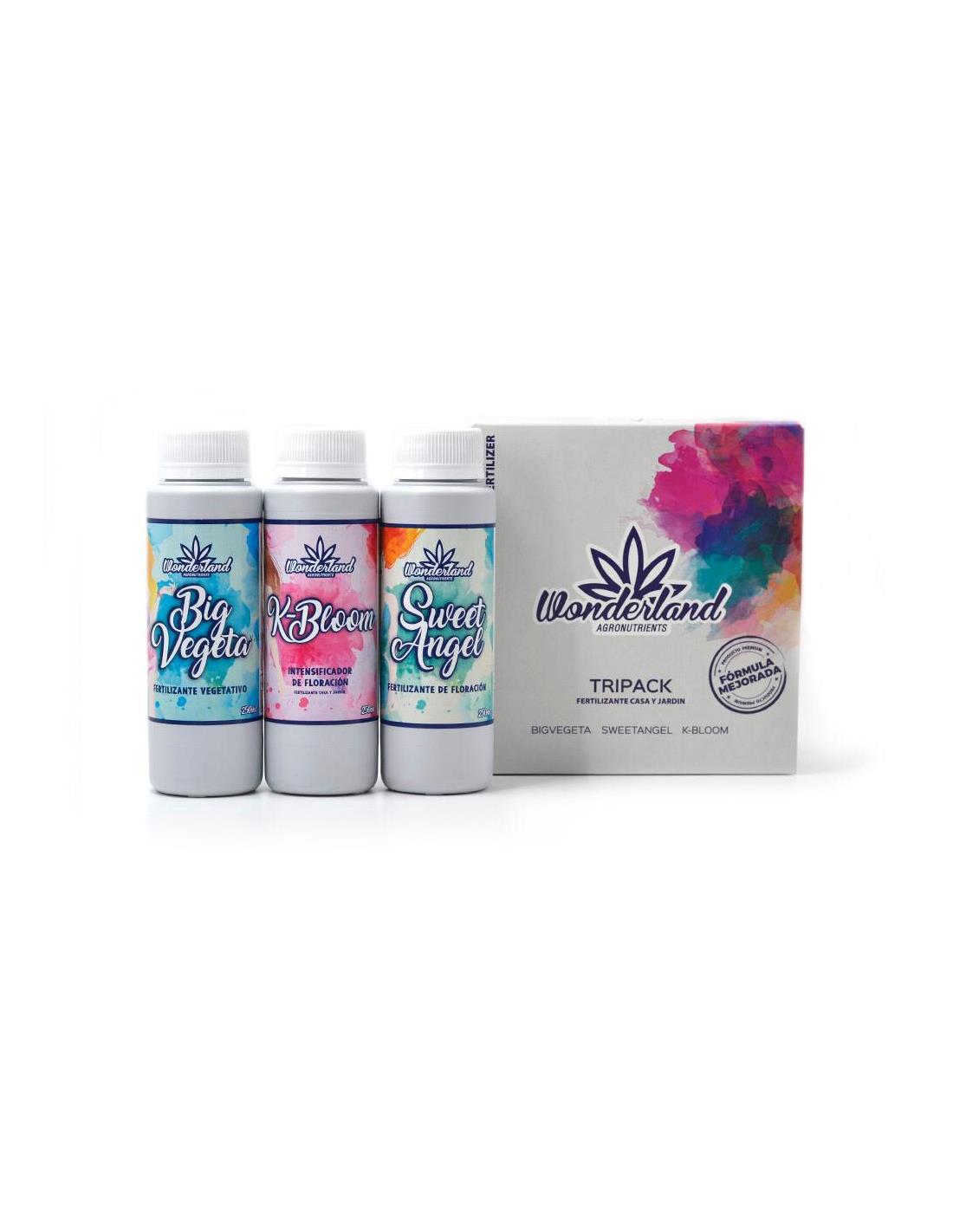 Wonderland es una marca de fertilizantes y estimulantes de alta calidad, perfectos para el cultivo de plantas anuales. Tripack de Wonderland posee 3 productos mezcla de fertilizantes y estimulantes que te permiten mantener un cultivo completo de principio a fin, incorporando botellas dirigidas a la alimentación en crecimiento como en floración.